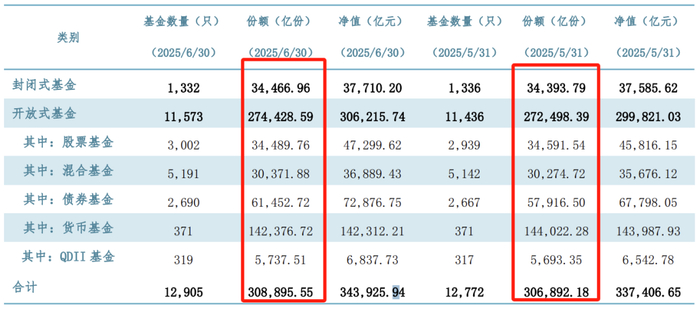 之前主动基金份额是持续减少,这次披露的数据5月份混合基金3.03万亿份,6月份数据为3.04万亿份,增加了0.01万亿份。说明主动基金份额持续减少趋势改变了。