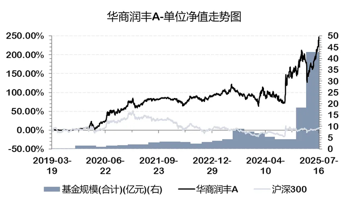 以华商润丰A为例,2019-2024年连续6年实现正回报,今年年内也已经取得了36.70%的收益。截至2025年7月17日,华商润丰A单位净值达到3.4680元,已经创出了历史新高,自今年4月7日以来已经反弹了超48%,较2021年高点也快翻了一倍。
