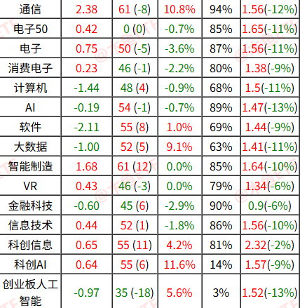而消费、证券、AI、信创等实际成交大幅下行,机构情绪有明显回落迹象。