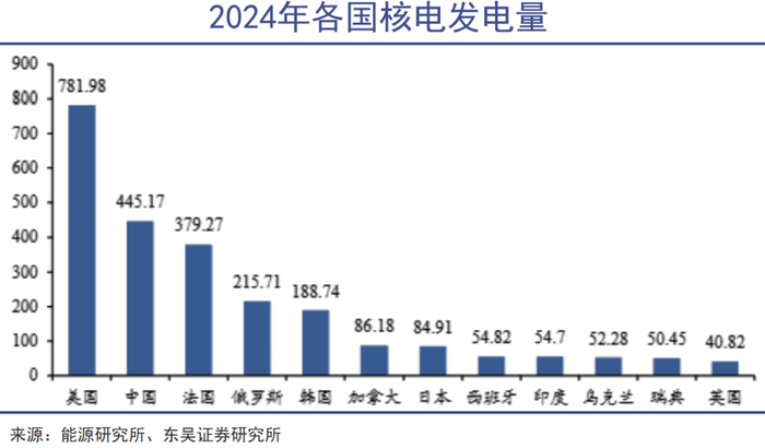 以美国为例,大部分核电机组都建成于上世纪70-80年代,现有在运核电机组94台,总装机容量为96.95 GWe。美国能源部(DOE)曾表示,要实现2050年净零排放目标,核电总装机容量还需要增加200 GWe。