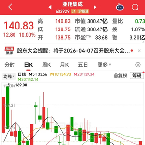 3月13日,亚翔集成(603929)股价大幅高开,开盘后不到1分钟涨停,最新收盘价140.83元/股。最新股价与近1年低点相比,该股最大涨幅达到4.6倍以上。