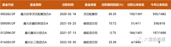 鑫元安鑫回报的任职期间回报排名在同类基金的前7%,鑫元鑫动力的任职回报排名也在同类基金的前13%,