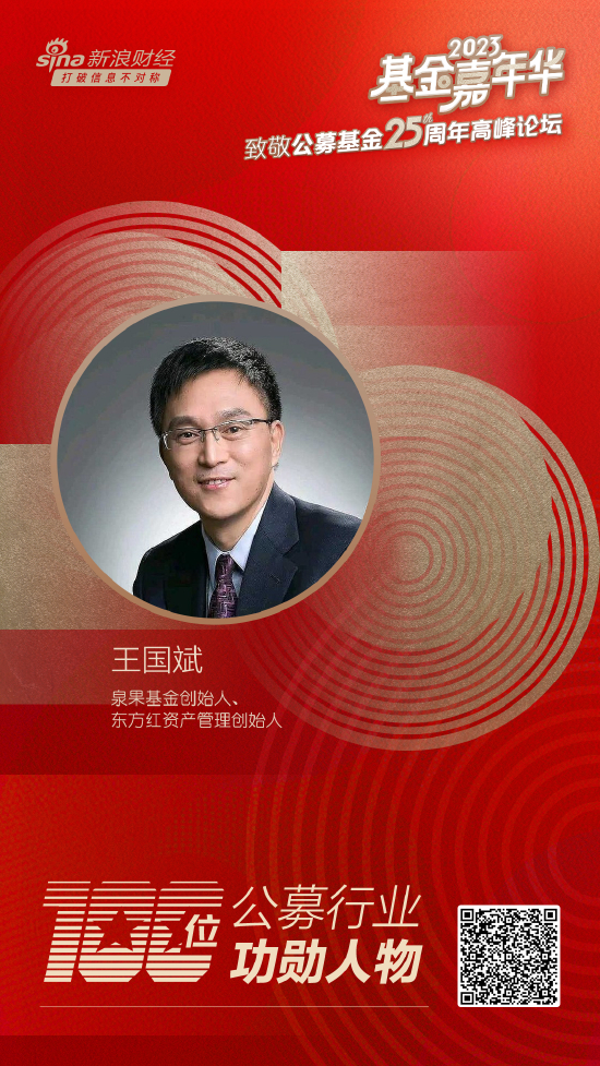 泉果基金创始人、东方红资产管理创始人王国斌荣获致敬公募25周年评选基金行业功勋人物。