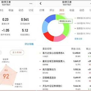 今天司令结合“股债王者”实盘来说说组合的思路和表现吧,供追求稳健型风格配置的小伙伴参考。组合包括65%权益基金和35%债券基金,但如果考虑到混合基金同时也“拥有”部分债券仓位的话,实际上债券部分的仓位要达到百分之四十几,所以这个组合更接近于“半股半债”。截止1月17日(下同),组合近6月收益为13.08%,同期沪深300涨幅为9.20%,超额收益还是比较明显滴。这个组合最近一次调仓是在三个月前,因为当时司令考虑到2019最后一个季度市场风格逐渐会转向“均衡型”,所以新选择了南方国策动力股票、交银施罗德精选混合、天弘中证证券保险C,同时依然以易方达安心回报债券A作为“打底”的债券基金是因为考虑到四季度转债市场表现可能会比较好(结果来看确实也是如此),以嘉实全球互联网股票作为“有外”配置是因为感觉美股依然在走上升通过(结果来看确实也是如此)。现在回头来看,应该说司令对于过去四季度市场整体预判还是比较到位,而且选择的基金也没有令司令失望,以至于近三个月来组合表现算是比较优秀。近3月组合收益9.88%,同期沪深300涨幅为5.85%,夏普比率为0.23,最大回撤仅为-1.93%。