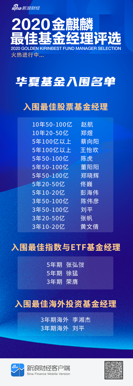 华夏基金蔡向阳、张弘弢等18位大咖入围2020金麒麟最佳基金经理