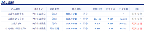 席行懿基金管理经验并不算丰富,但业绩良好,且致力于货币基金的管理,任期回报率为10%左右。