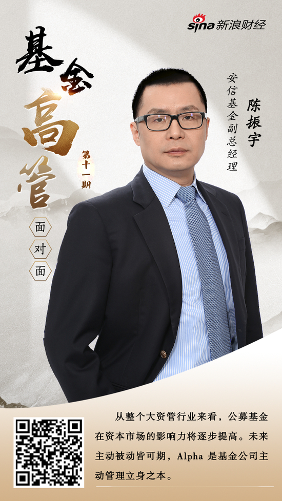 新浪财经讯 近日,安信基金副总经理陈振宇接受了新浪财经专访。在金融业开放加速的大背景下,基金行业将迎来大发展时代。陈振宇分析认为,从整个大资管行业来看,公募基金在资本市场的影响力将逐步提高。未来主动被动皆可期,Alpha是基金公司主动管理的立身之本。