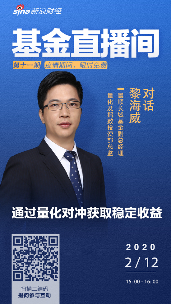 2月12日(周三)下午15:00-16:00 景顺长城基金副总经理、量化及指数投资部总监黎海威进行分享,主题:通过量化对冲获取稳定收益。