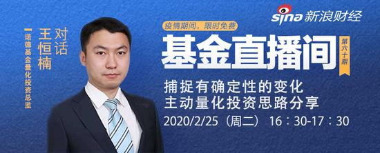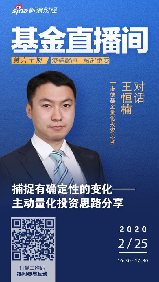 2月25日16:30-17:30 诺德基金量化投资总监:王恒楠做客了由新浪财经主办的《基金直播间》栏目。在线与广大投资者们就主动量化投资等方面的内容做了详细的交流。 以下为直播交流过程中的干货内容,等你来收!