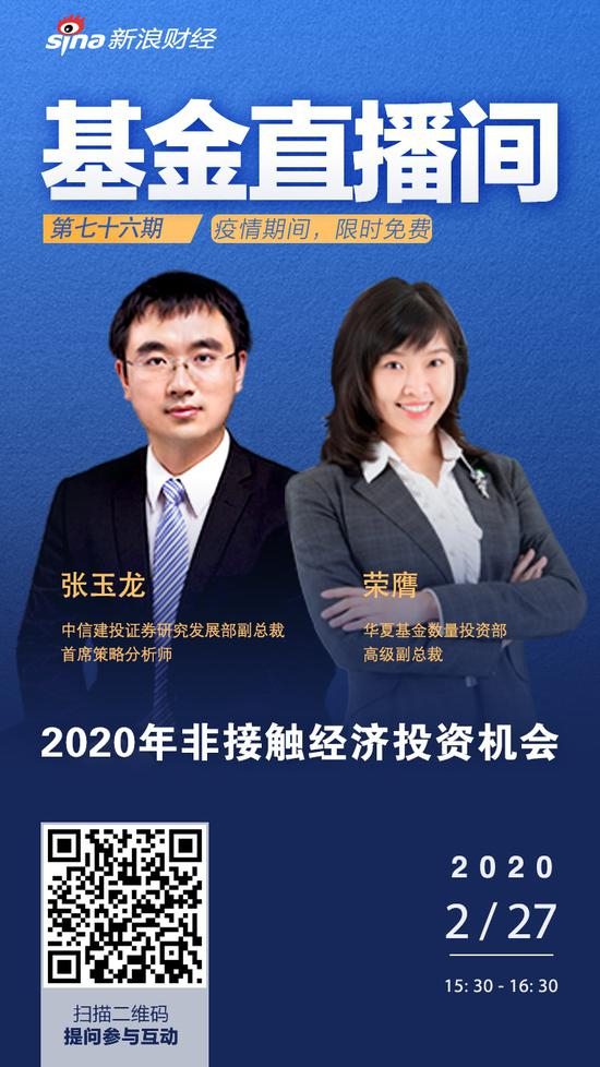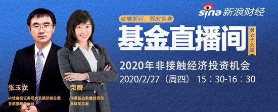 2月27日15:30中信建投证券研究发展部副总裁、首席策略分析师 张玉龙, 华夏基金数量投资部高级副总裁 荣膺分享:2020年非接触经济投资机会。