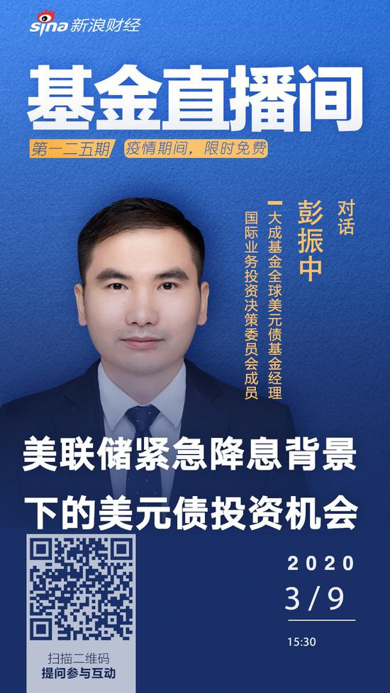 3月9日15:30大成基金全球美元债基金经理、国际业务投资决策委员会成员彭振中分享:美联储紧急降息背景下的美元债投资机会。