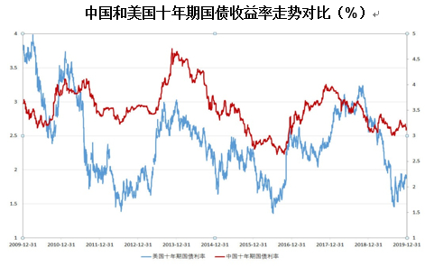 中国和美国十年期国债收益率走势对比(%)