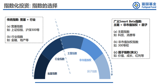 所以整体上我们经常提到的这个SmartBeta,这个Smart就是聪明,聪明的Beta,以前我们总觉得市场是一个Beta,我们赚的是市场Beta的钱。SmartBeta有很多学术界、业界大家经过几十年的发展总结出来,说有一些股票具有某一些共同的特征,这些股票合起来组成的这个股票的集合,整体会超越市场。所以我们把它定位为聪明的Beta。但是大家会先,它的选股逻辑跟大家平时自己去买卖股票有一些逻辑是挺像的,这个是SmartBeta的一个定义。这个想跟大家说的,红利也是一类选股的方式,比如有些投资者他就想找一些高分红的公司,找高分红公司有什么样的好处呢?就是因为公司相当于是分红反馈给投资者,相当于是对股东的反馈,有些公司持续分红,至少他的现金流是好的,他这样才能有钱拿来分红,这一类也是选股的逻辑。这是想跟大家简单了解一下指数投资的整体框架。