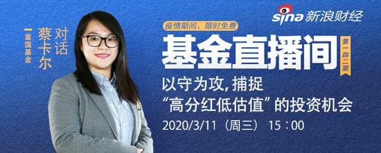 2020年3月11日 15:00-16:00富国基金蔡卡尔分享:以守为攻,捕捉“高分红低估值”的投资机会。