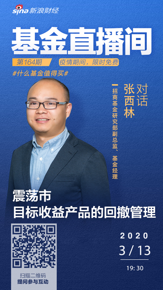 3月13日19:30招商基金研究部副总监、招商安博灵活配置混合型基金、招商丰泰灵活配置混合型基金(LOF)基金经理张西林分享:震荡市目标收益产品的回撤管理。