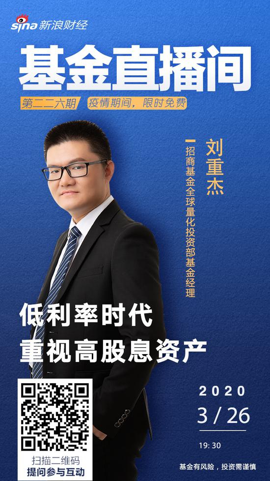 3月26日19:30招商基金全球量化投资部基金经理/招商深证100ETF、招商中证红利ETF基金经理刘重杰分享:低利率时代重视高股息资产。