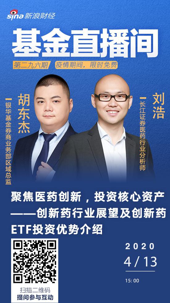4月13日15:00银华基金券商业务部区域总监胡东杰,长江证券医药行业分析师刘浩:聚焦医药创新,投资核心资产——创新药行业展望及创新药ETF投资优势介绍。