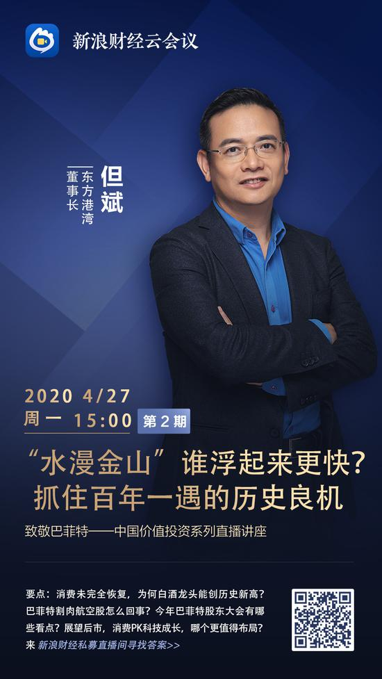 新浪财经讯 4月27日东方港湾董事长但斌做客新浪财经《私募直播间》分享,主题:“水漫金山”谁浮起来更快? 抓住百年一遇的历史良机。他表示,最近的疫情也算是百年一遇的疫情冲击,恰恰这种情况下怎么践行价值投资,这是很现实的问题,也是非常有意义的事情。我们说“贪婪的时候你要恐惧,恐惧的时候你要贪婪”。实际上目前的这个情况,恰恰是需要冷静和面对客观的事实,表现出更坚定的时刻。好股票、坏股票都一起扔掉了,这种情况下你能不能买到一些比较好的公司,随着这些公司未来的变化,可能会显示更好的收益。