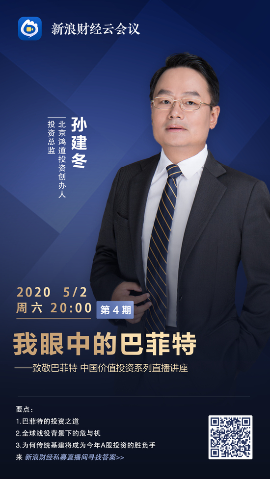 新浪财经讯 5月2日,鸿道投资创办人、投资总监孙建冬做客新浪财经《私募直播间》分享,主题:我眼中的巴菲特。
