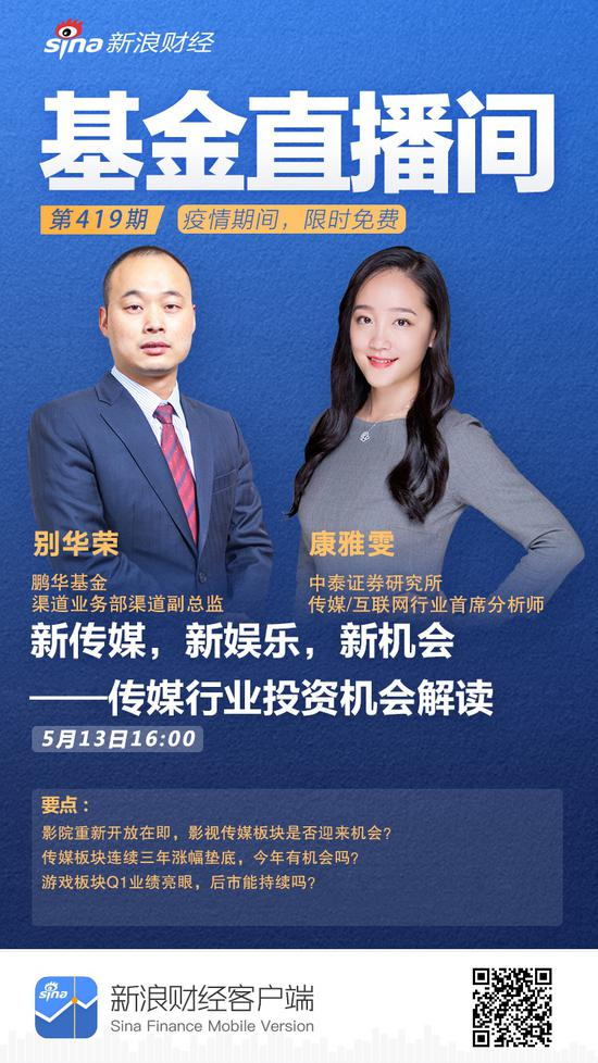 5月13日16:00中泰证券研究所传媒/互联网行业首席分析师康雅雯,鹏华基金渠道业务部渠道副总监别华荣 :新传媒,新娱乐,新机会——传媒行业投资机会解读。