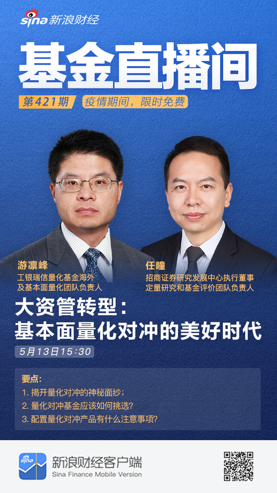 5月13日15:30工银瑞信量化基金海外及基本面量化团队负责人游凛峰 ,招商证券研究发展中心执行董事,定量研究和基金评价团队负责人任瞳:大资管转型,基本面量化对冲的美好时代。