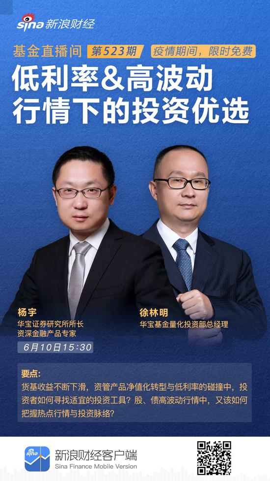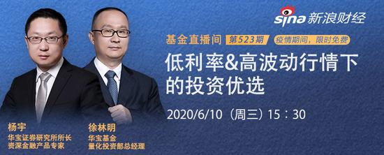 6月10日15:30华宝证券研究所所长、资深金融产品专家 杨宇,华宝基金量化投资部总经理 徐林明 ,分享主题:低利率&高波动行情下的投资优选。
