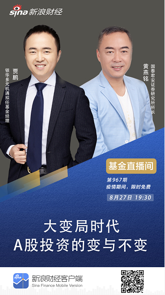 8月27日银华多元机遇拟任基金经理贾鹏,国泰君安证券研究所所长黄燕铭,分享主题:大变局时代,A股投资的变与不变。
