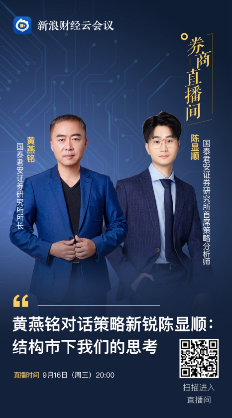 9月16日国泰君安证券研究所所长黄燕铭,对话国泰君安证券研究所首席策略分析师陈显顺,围绕结构市下的思考展开深度对话。