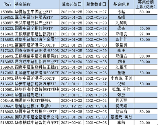 正在发行或即将发行的基金如下: