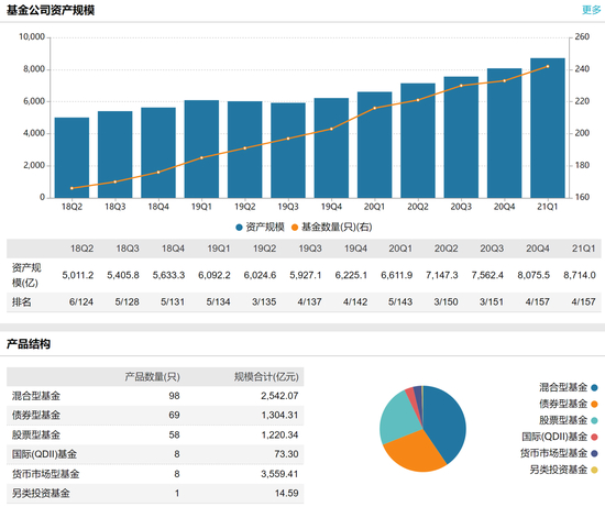 南方基金成立于1998年3月6日,是中国老十家基金公司之一。南方基金股东包括华泰证券股份有限公司、深圳市投资控股有限公司、厦门国际信托有限公司、兴业证券股份有限公司、厦门合泽吉企业管理合伙企业(有限合伙)、厦门合泽祥企业管理合伙企业(有限合伙)、厦门合泽益企业管理合伙企业(有限合伙)、厦门合泽盈企业管理合伙企业(有限合伙)等八家机构。根据WIND数据,截止2021年Q1,南方基金资管规模8714亿。2020年年报显示,南方基金20年营收562963万,净利润148410万,净利润增长率65.47%。