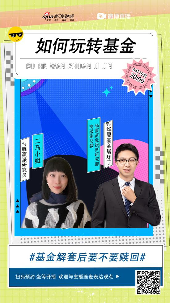 6月10日(周四)20:00,新浪财经邀请华夏基金研究部高级副总裁、基金经理屠环宇@华夏基金屠环宇,知名财经博主二马小姐@躺赢派研究员,微博连麦直播,解析下半年投资策略。关注嘉宾微博看直播。