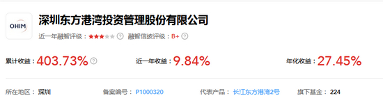 根据私募排排网显示,深圳东方港湾投资管理股份有限公司(以下简称“东方港湾”),始创于2004年,系中国首批获得私募基金管理牌照(备案号:P1000320)的33家机构之一。多年来砥砺风雨,东方港湾始终是价值投资的笃行者,孜孜秉持“与伟大企业共成长”的价值理念,致力成为中国最长存的优秀投资企业。