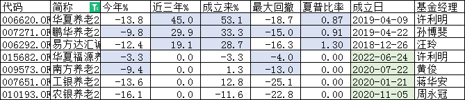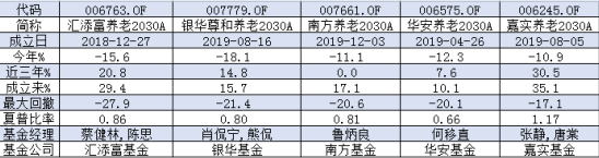 6只2030目标日期养老金基金,其中平安养老2030A为2022年6月22日成立,时间短可以先行剔除。