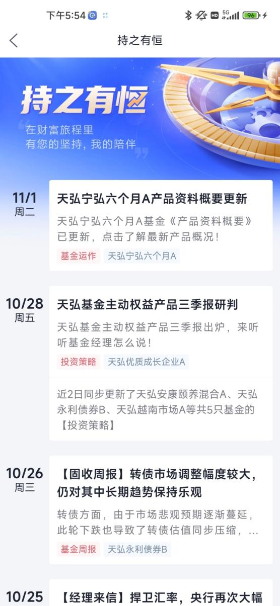 值得重点关注的还有APP中的“持之有恒”,该功能定位是用户的持仓小管家,围绕用户的持仓产品,将相关重要信息如基金经理观点、市场深度解读、基金状态变更、分红、重要公告等信息集合、分类展示,希望用户能更方便的了解产品本身的变化、持仓最新变动、市场最新解读,从而真正地做到持之有恒,获取基金本身的收益。相比与其他的同业APP持仓基金页面,用户在查看持仓的资产收益情况时,对关心的产品近况进行查看,但这种触达和查看的效率其实不高,产品众多,也没有心思每个都扫一遍。而持之有恒,是希望像一个贴心的管家或助手,帮助用户筛选重要信息,将整理后的信息展现给用户,不需要进入持仓挨个查看,信息简明扼要,一次“批阅”所有重点——当基金经理有新的观点,市场异动时天弘对之的解读,产品发生重要的交易状态变化,都能尽快的得知,大大提高了信息的效率。而用户对产品了解更多,对市场异动了解更多,就更易对产品信任,对基金经理信任。除了和持仓相关的重点信息,每日还有早盘、收评解读音频,不需要点击进入详情页,直接在首页直接点击即可收听。