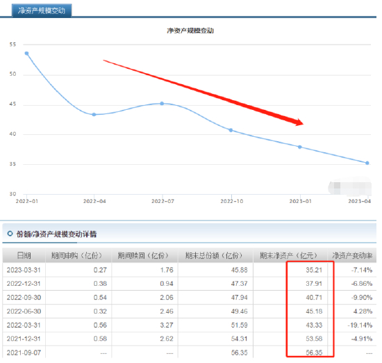 2023年一季度与基金成立时相比,该基金规模缩水了26亿,缩水比例高达39.4%。