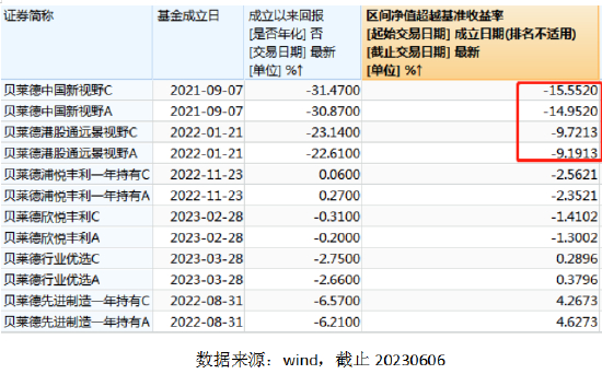 Wind数据显示,贝莱德中国新视野混合成立以来跑输基准15%,贝莱德港股通远景视野跑输基准9.7%。