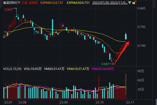11月1日,受贵州茅台利好刺激,白酒板块大涨。食品饮料ETF(159843)超4%高开,截至9时45分涨2.43%,盘中冲击七连升;成分股五粮液、山西汾酒、舍得酒等纷纷拉升冲高。