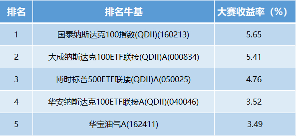 【牛人持仓的牛基TOP5】3只产品跟踪纳指,其中国泰纳斯达克100指数(QDII)(160213)赚5.65%