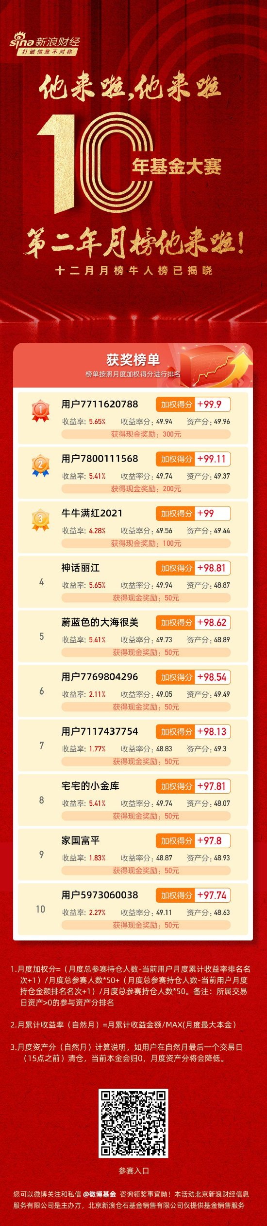 本文为十年基金之约大赛第二年赛季十二月月榜战绩榜单。