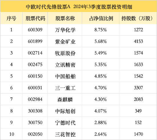 中欧基金周蔚文三季报观点出炉!增配万华化学、紫金矿业,宁德时代新进前十大重仓