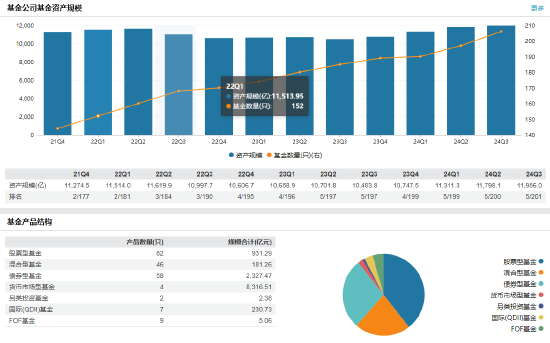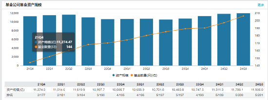 天弘基金成立于2004年11月8日,是经中国证监会批准设立的全国性公募基金管理公司之一,目前注册资本5.143亿元。截至2024年9月30日,天弘基金(含专户和子公司天弘创新)资产管理总规模12,156.33亿元,处于行业前列。其中,公募基金管理规模11,957.24亿元,排名行业前列;非货币公募总规模3,640.73亿元。基金业协会公布的2024年三季度基金公司非货公募月均规模排行榜,天弘基金位列第15。