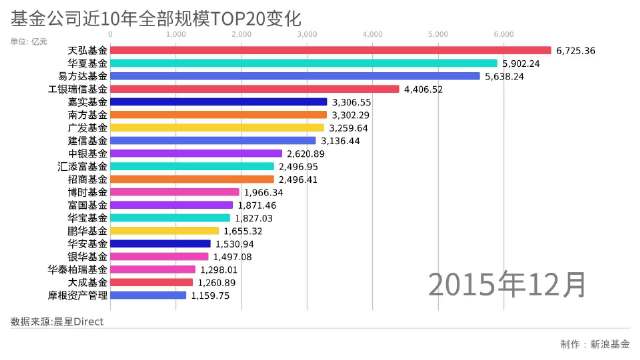 基金公司近10年全部规模TOP20变化