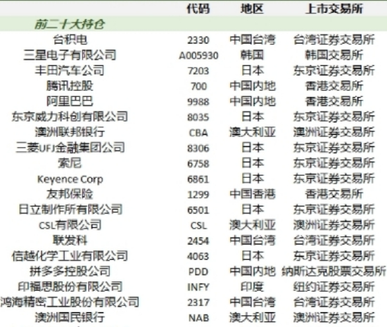 从穿透持仓看,亚太精选ETF(159687)前20大成分股,个股集中度较低,第一大重仓股“台积电”的占比远低于10%,前10大重仓股的总占比也不足30%。主要企业是亚洲、太平洋地区(如澳大利亚)的低碳科技型龙头企业。