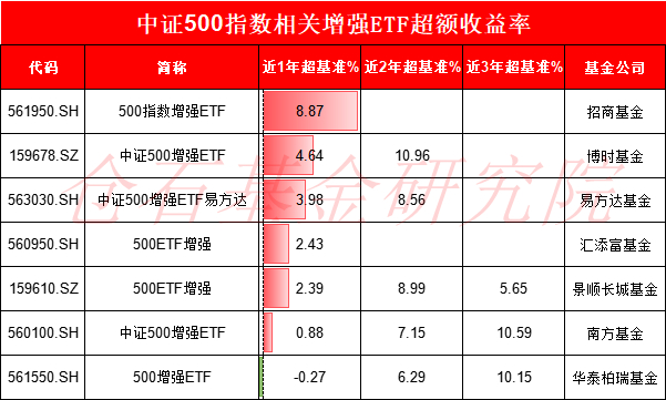 7大公募激战A500增强ETF,怎么选?易方达中证500增强ETF近一年超额收益3.98%,仅有招商基金的一半(名单)