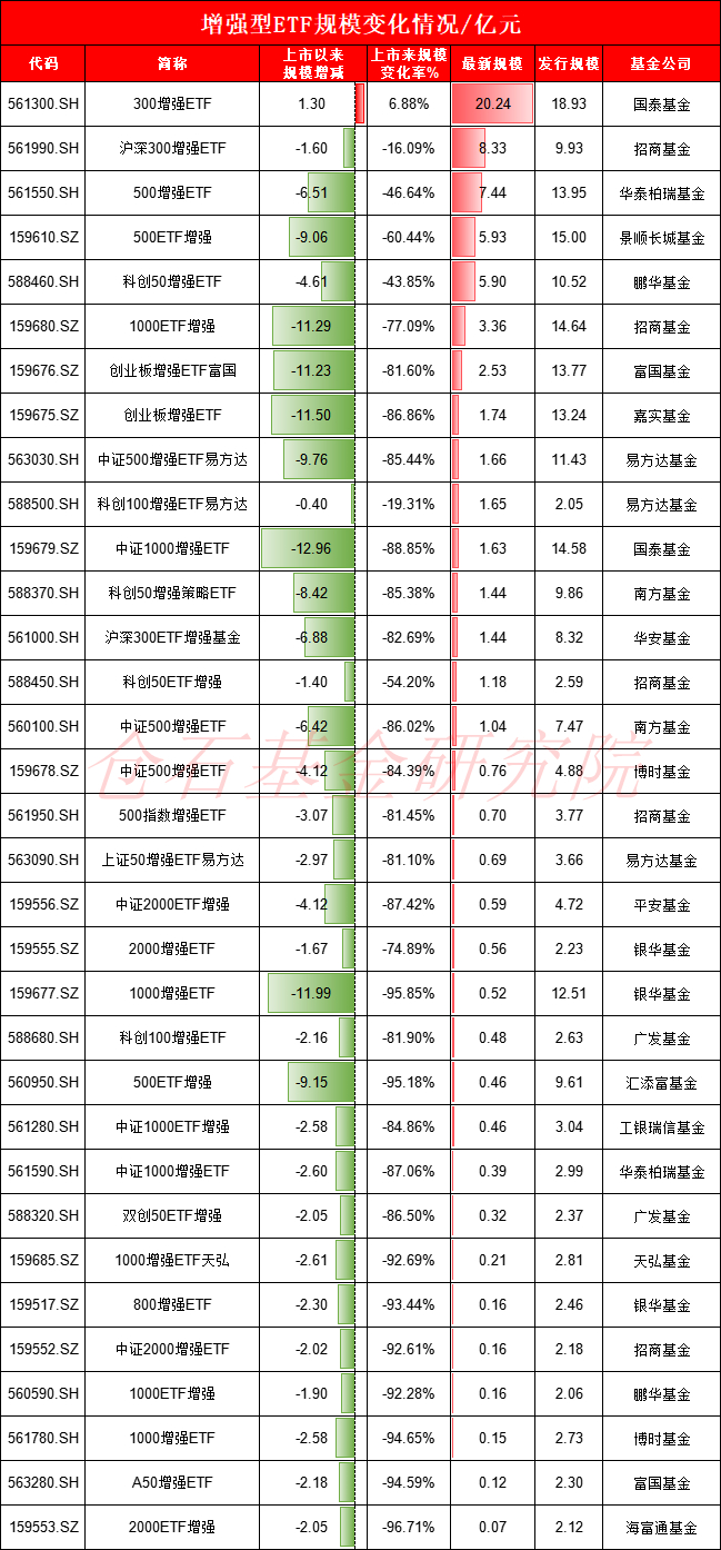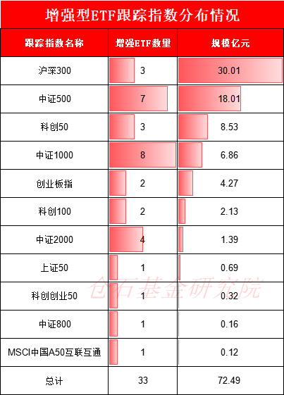 跟踪指数:沪深300增强ETF规模30亿最大,中证1000增强ETF达8只数量最多