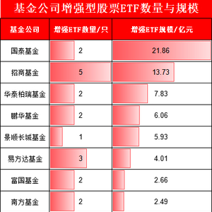 招商基金5只增强ETF数量最多,国泰基金21.86亿元规模最大