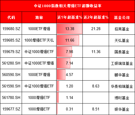 超额收益:近1年招商基金1000ETF增强跑赢基准13%,平安基金中证2000ETF增强跑输基准8.69%