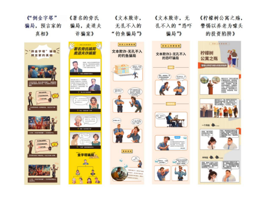 《历史上的著名骗局》从2024年至今已推出了《“倒金字塔”骗局,预言家的真相》、《著名的旁氏骗局,麦道夫诈骗案》、《文本欺诈,无孔不入的“钓鱼骗局”》、《文本欺诈,无孔不入的“恐吓骗局”》和《柠檬树公寓之殇,警惕以养老为噱头的投资陷阱》5篇漫画。这些骗局虽发生在不同时期、不同场景,但许多骗局在当下换个包装仍在侵蚀投资者的财富。我们从历史中汲取经验教训,才能在各类诈骗手段层出不穷的环境中,守护好自己的财富。