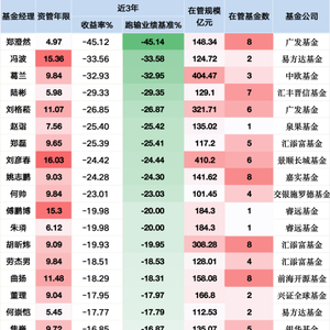 (基金类型:普通股票型、偏股混合型、灵活配置型、平衡混合型,最新规模>100亿元,投资经理指数近3年,以沪深300为基准跑输>10%)