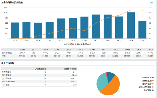 财通基金成立于2011年6月,公司总部设立于上海,在北京、广州、杭州、成都等地设有分支机构。财通基金注册资本2亿元,由3家企业持股,其中,财通证券持股40%,浙江瀚叶股份有限公司持股30%、杭州市实业投资集团有限公司持股30%。截止2025年一季度,资产规模678.6亿。
